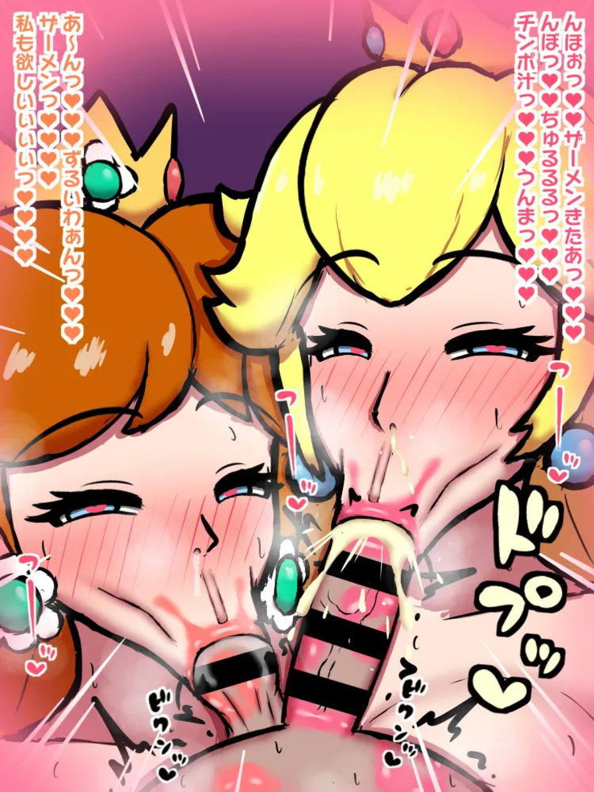 ビッチなピーチ姫がデカマラをしゃぶってザー◯ンをごっくんする♡